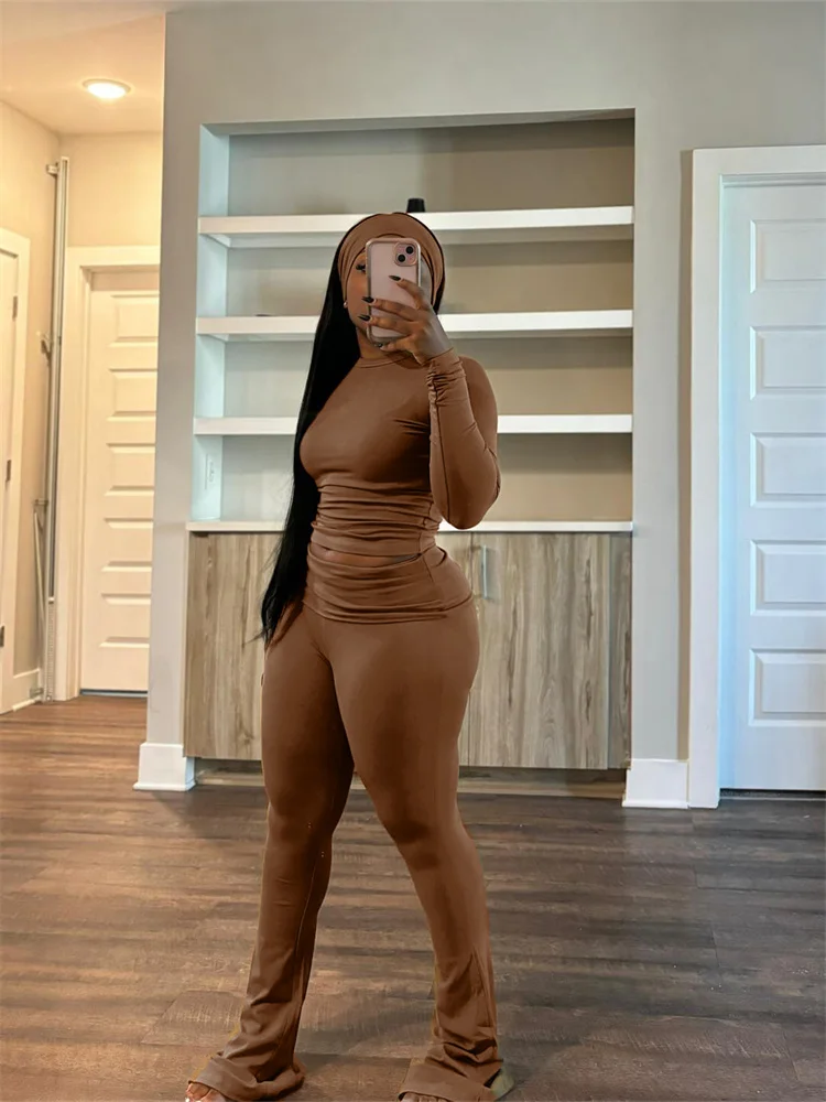 Elegant Design: Solid color long sleeve maxi suit with a sleeveless dress and long coat for a simple yet elegant look.