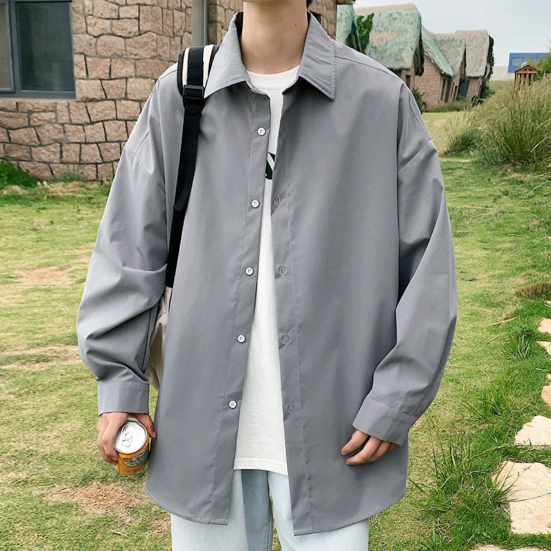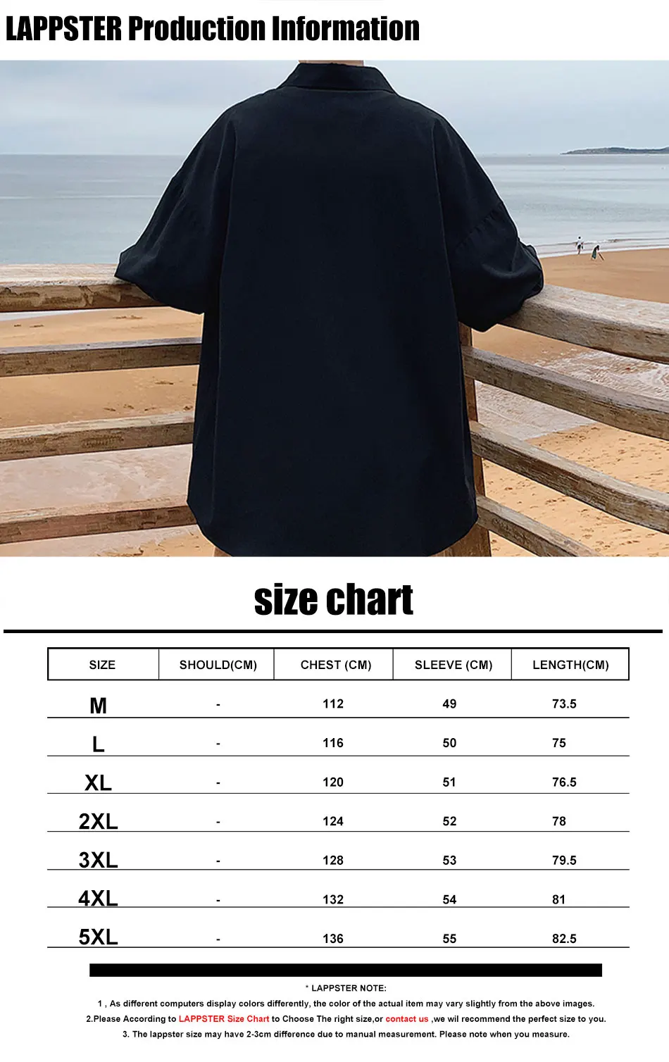 LAPPSTER Men White Solid Vintage Shirts 2023 Mens Harajuku Fashion Oversize Shirt Male Black Casual Streetwear Blouses Plus Size