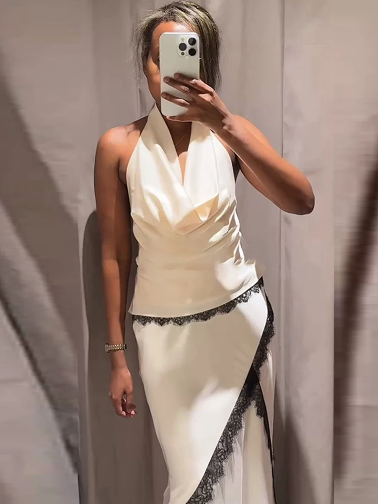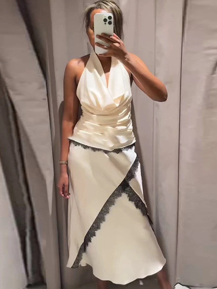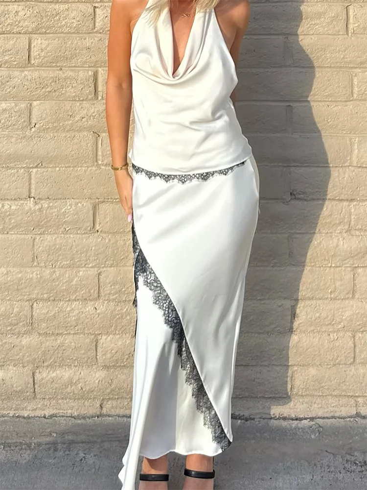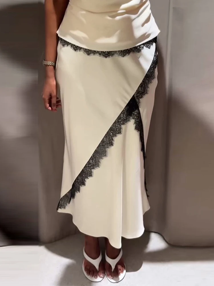 Women Elegant Faux Silk Satin Skirt High Waist Fishtail Skirt A-Line Solid Color Glossy Office Lady Skirt Workwear
