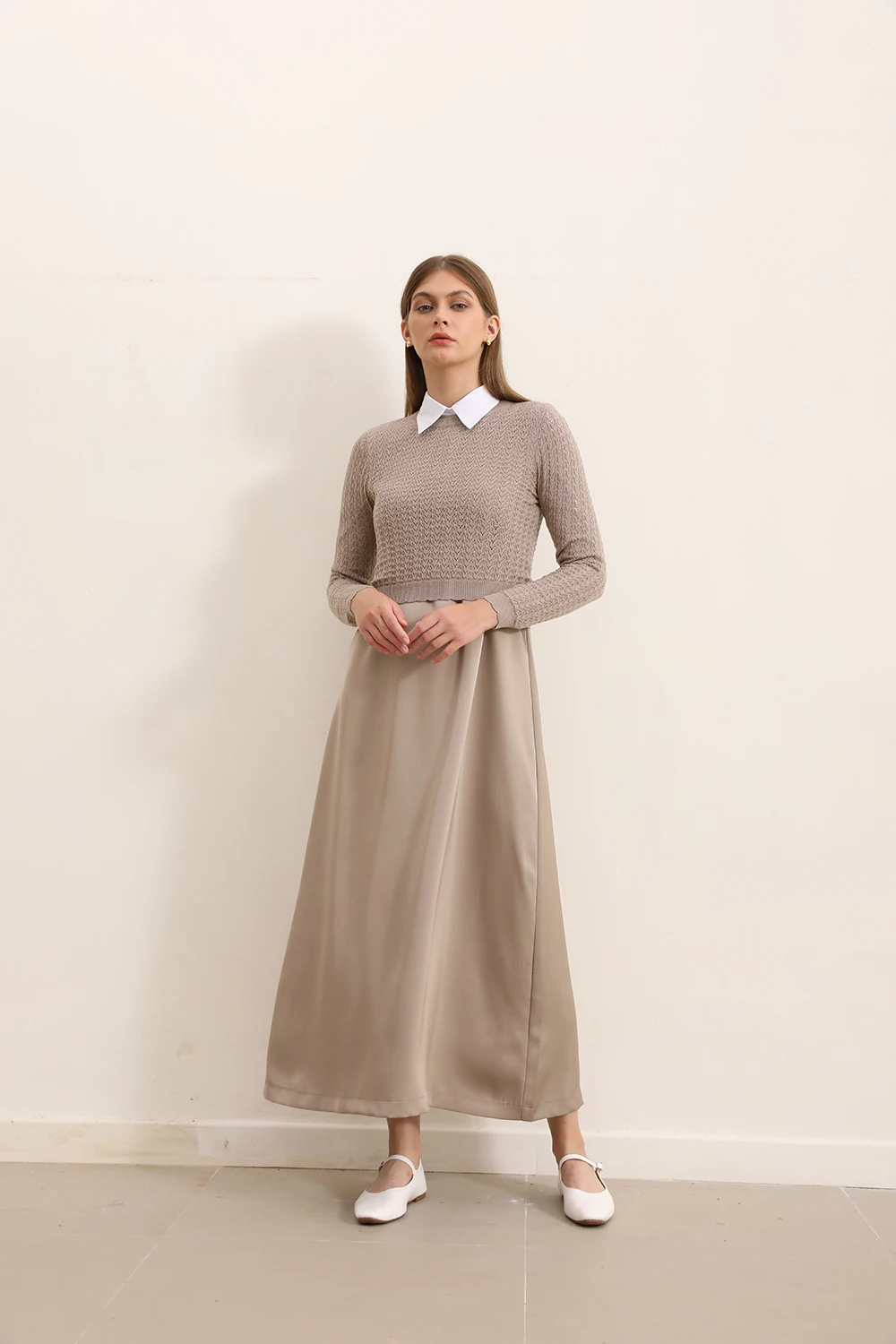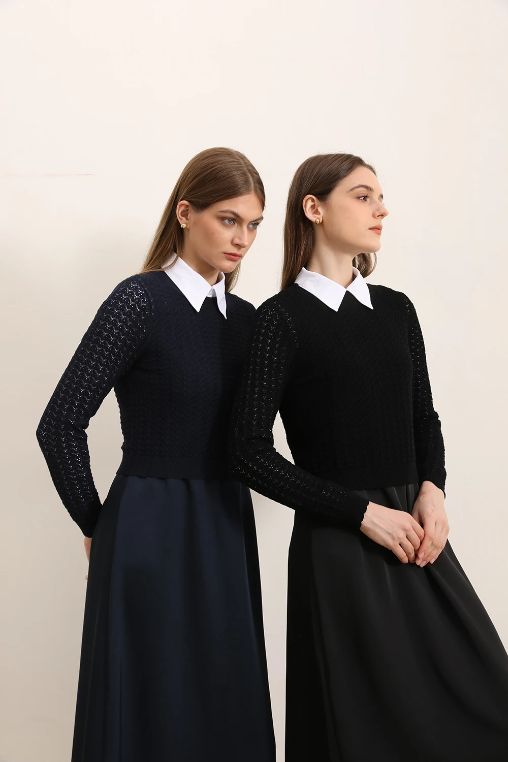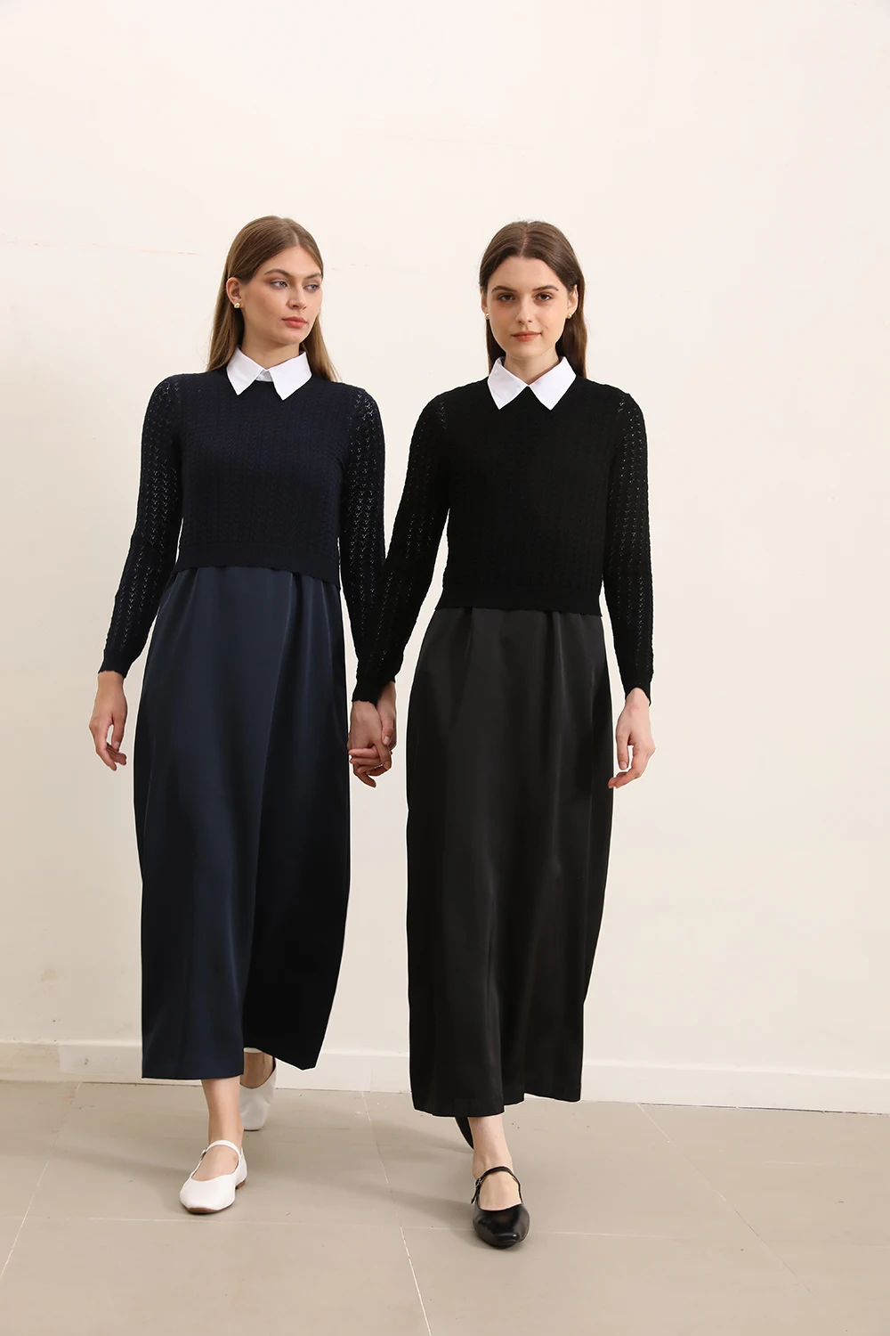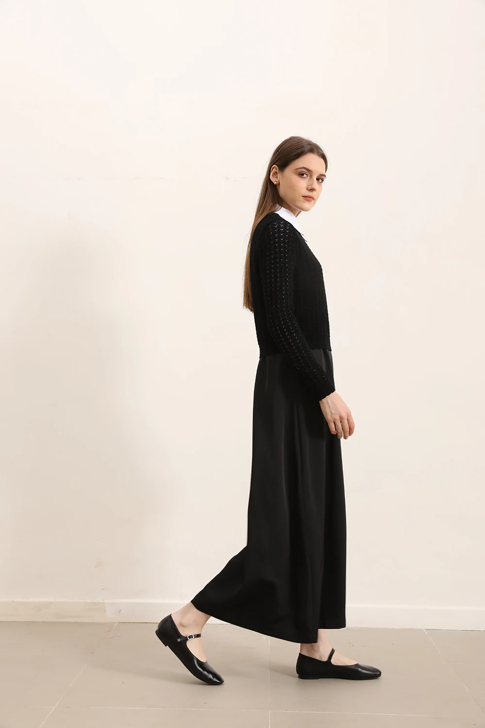 AP 2025 Autumn and Winter Women Hollow Sweater and Satin Sleeveless Dress Elegant Fashion Lady Clothing