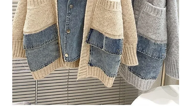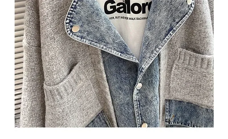 Autumn Winter Women Splicing Denim Jacket Women Long Sleeve Jean Jackets Female Loose Sweater Cardigan Jacket Fashion Leisure