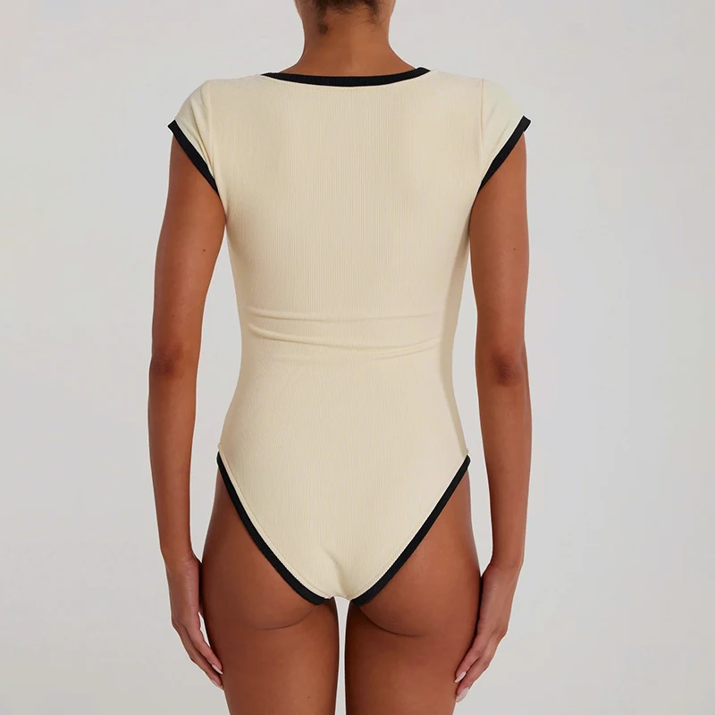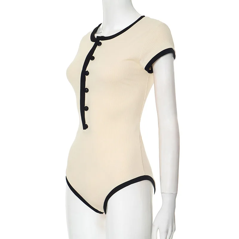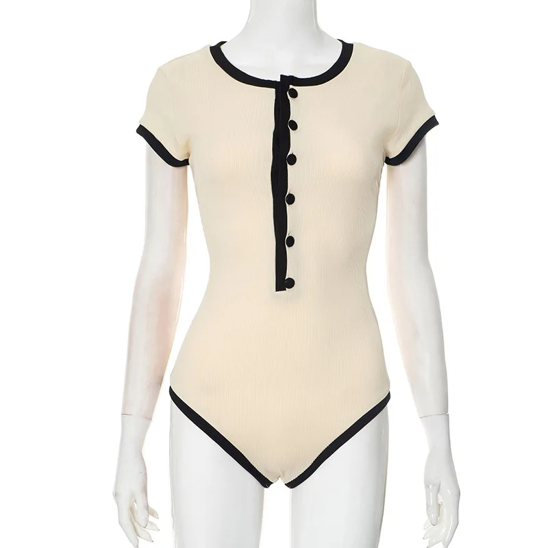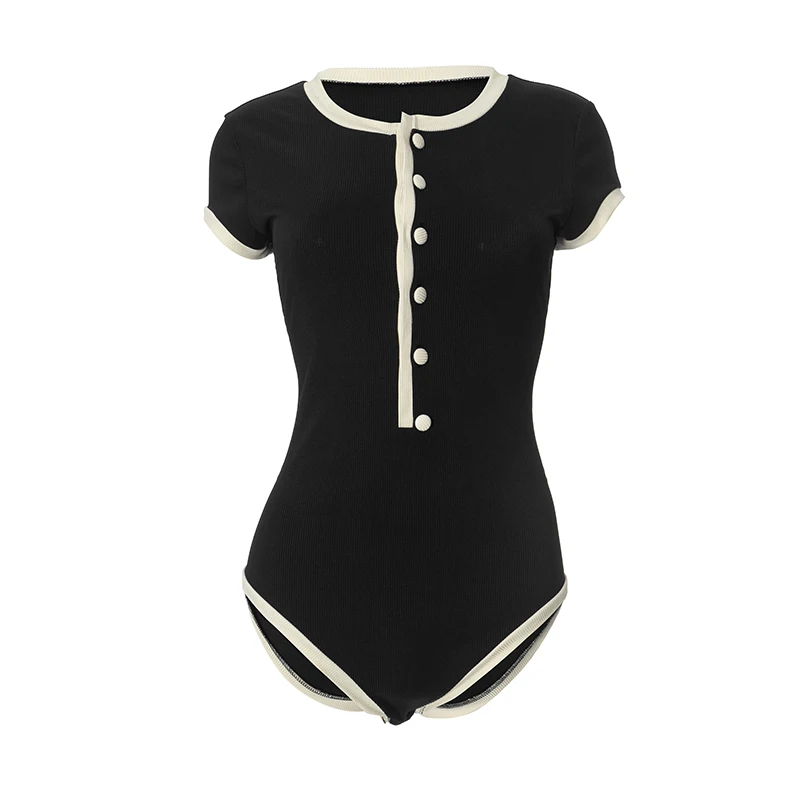Sexy One Piece Bodycon Bodysuit Short Sleeve O Neck Open Basic White Black Red Overalls Women Body Top Skinny Rompers Female